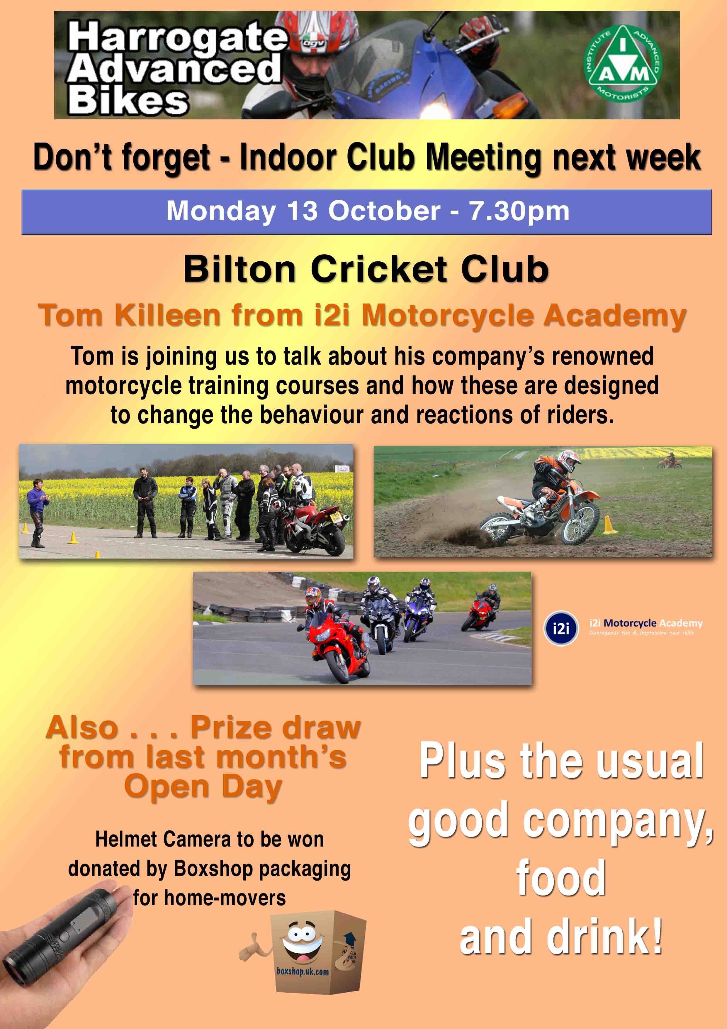 Indoor Meeting – Next Monday – Bilton Cricket Club