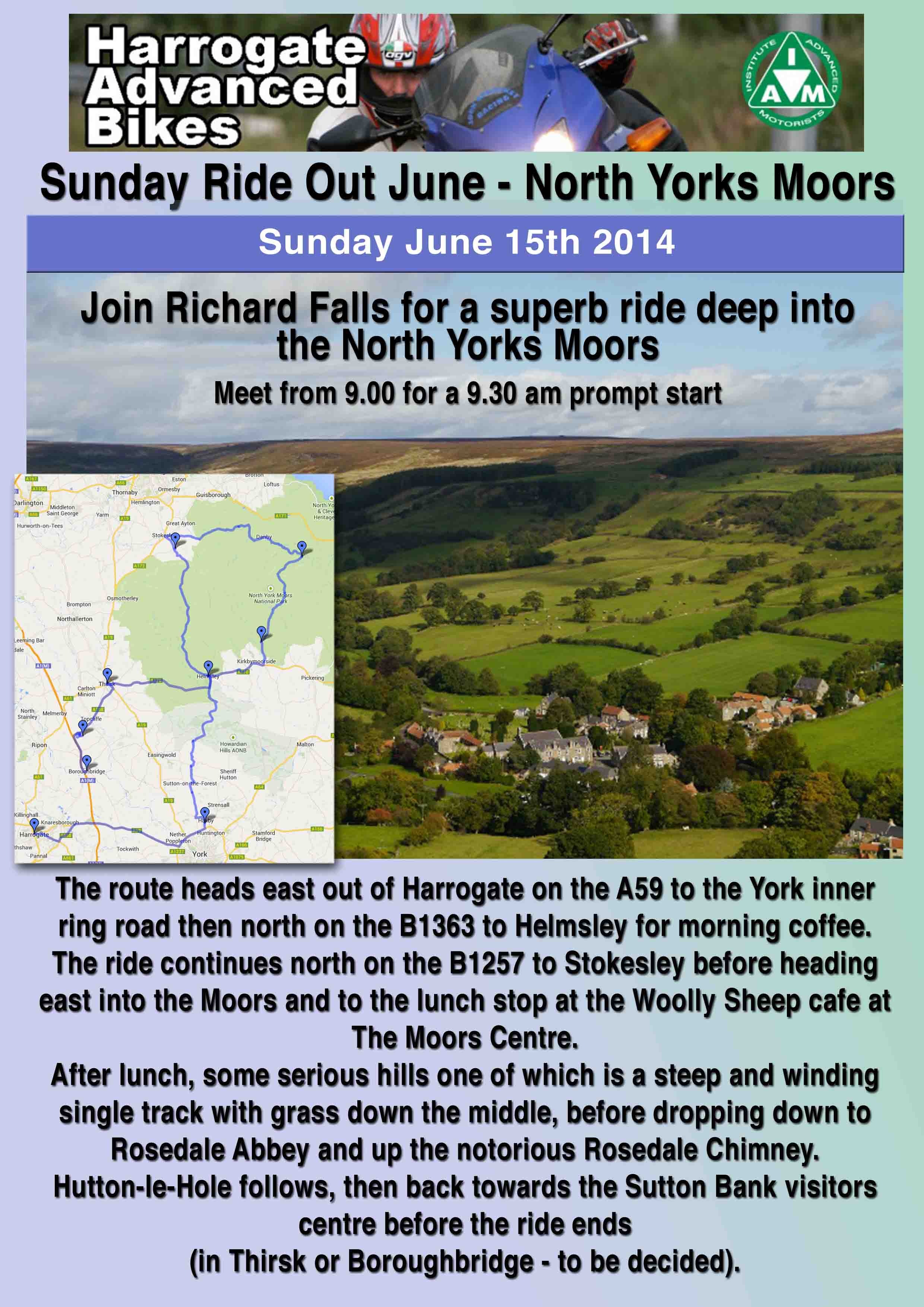 Ride Out – Sunday June 15th 2014 June 3, 2014UncategorizedDavid Haywood I’m posting this a little early as I’m away next week for a couple of weeks, David. Ride Out starts from Asda lorry park in Harrogate as usual.